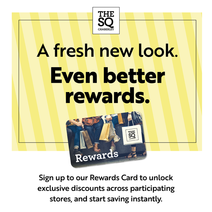 The Camberley Rewards card is completely FREE and gives you access to offers within The Square Camberley.